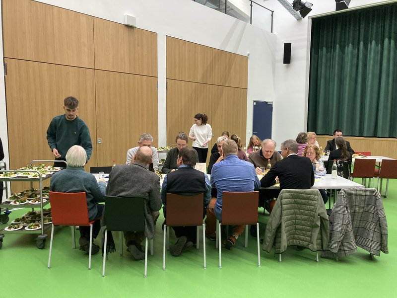 Am Samstag, 8. November 2025 trafen sich Jubiläums-Abschlussjahrgänge der Schloss-Schule Kirchberg. Eingeladen waren die Absolventen der Jahre 2020, 2015, 2010, 2005, 2000, 1995, ..., sowie ehemalige Lehrkräfte und Mitarbeitende und natürlich auch das aktuelle Kollegium. Die Gäste wurden bei einem Sektempfang von der Alumni-Beauftragten Stephanie Früh begrüßt. Im Anschluss führten Schüler*innen der Oberstufe die Besucher*innen über das Gelände und zeigten den Ehemaligen die Neuerungen der letzten Jahre. Auch bei der Bewirtung unterstützten die jetzigen Schüler*innen tatkräftig das Küchenteam der Schloss-Schule, unter der Leitung von Angelika Siebert. Alle Besucher*innen wurden im Anschluss an die Ansprachen des Schloss-Schul-Vereins, Heiner Gröger, und der Schule durch den Geschäftsführer, Martin Albrecht, mit einem leckeren 4-Gänge Menü verwöhnt. Erinnerungsstücke aus dem Schularchiv, unter der Leitung von Ralf Martius, rundeten den Abend ab. Gemeinsam wurden Fotos angesehen, alte Abizeitungen gelesen und vergangene Geschichten wieder in Erinnerung gerufen. Wir danken allen Gästen für das Interesse und für den Besuch in Kirchberg! Bis zum nächsten Wiedersehen im kommenden Jahr 2026 beim Schulfest mit Altschülertreffen am 18. Juli – wir freuen uns drauf!
