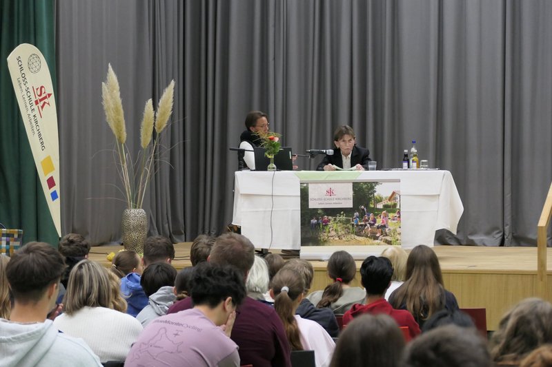 Die Veranstaltung wurde von dem Verein Zeugen der Zeitzeugen e.V. in Zusammenarbeit mit Schloss-Schul-Lehrerin Andrea Scheibel organisiert. Im Rahmen unseres schulischen Zeitzeugenprojekts erzählte sie eindrücklich ihre Lebensgeschichte – eine Geschichte von Verfolgung, Verlust, aber auch von Mut, Menschlichkeit und dem Willen, Zeugnis abzulegen.